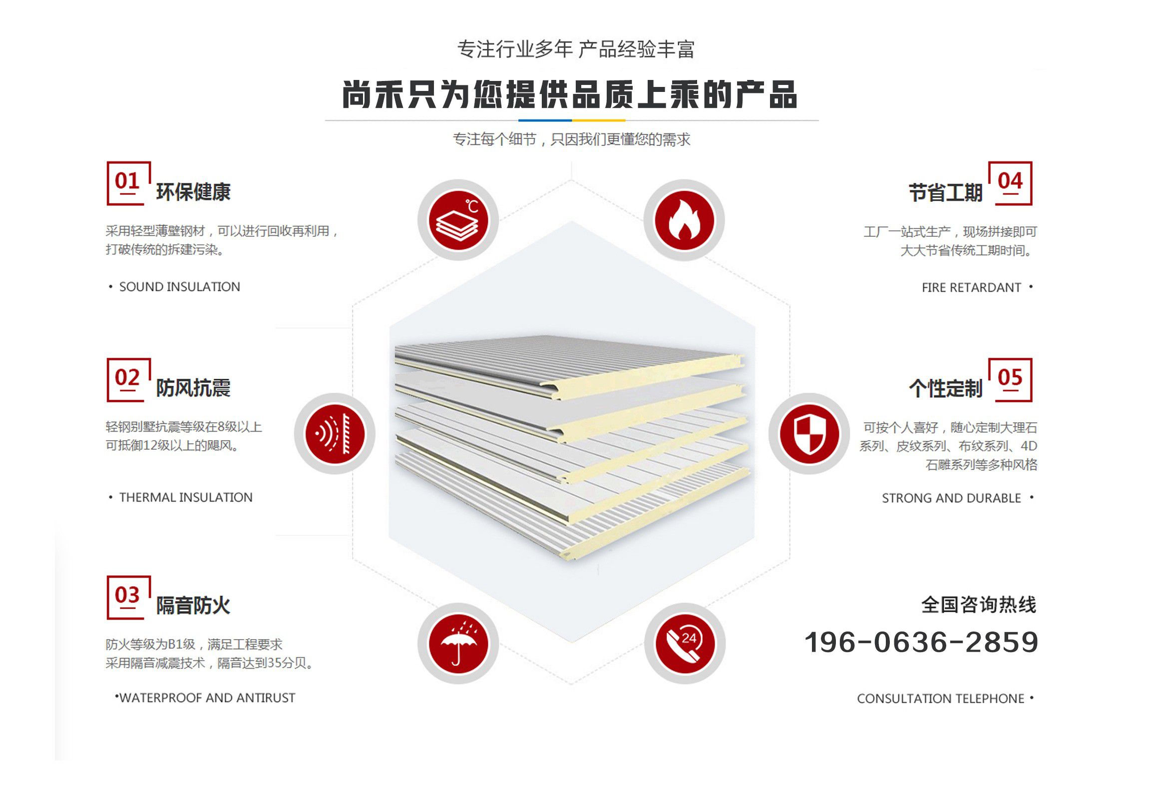 山東尚禾經(jīng)貿(mào)有限公司是集板材設(shè)計、研發(fā)、生產(chǎn)、施工、一體化的科技公司,并在同行業(yè)中率先通過了質(zhì)量、環(huán)境、安全管理體系認證。公司2011年投入資金2000余萬元引進世界先進的聚氨酯節(jié)能板連續(xù)生產(chǎn)線、意大利進口發(fā)泡系統(tǒng),采用六組份在線自動操作混合澆注技術(shù),在線一次性完成社會配料中心或工廠的配比混合工藝,并可以根據(jù)溫度在線自動調(diào)整,從而生產(chǎn)處與眾不同的高強度、節(jié)能型、綠色環(huán)保的聚氨酯夾芯板。(其使用年限高于同行業(yè)其他品牌5-10年) 公司主要經(jīng)營范圍包括聚氨酯夾芯板,PU夾芯板,冷庫板,潔凈板,聚氨酯冷庫板,冷庫保溫板的設(shè)計、生產(chǎn)、銷售、技術(shù)指導、安裝及一體、以及進出口業(yè)務(wù),是中部六省最大的綠色節(jié)能建材生產(chǎn)基地。聚氨酯夾芯板年產(chǎn)200萬平方米、PU夾芯板、冷庫保溫板500萬平方米、鏈整產(chǎn)業(yè)綜合實力,開創(chuàng)了六省至中西部創(chuàng)新型中小名企總部基地,并將著力推進中國中西部地區(qū)集成房屋住宅產(chǎn)業(yè)化發(fā)展進程。 科技創(chuàng)新、節(jié)能典范。千萬間始終秉承“誠信、合作”的企業(yè)文化精髓,長期致力于鋼板材結(jié)構(gòu)節(jié)能建筑產(chǎn)業(yè),愿與社會各界攜手合作,共鑄綠色、環(huán)保美好未來。 產(chǎn)品具有良好的絕熱、阻燃、隔音、環(huán)保、耐久性能,可廣泛應(yīng)用于工業(yè)、商用建筑內(nèi)外墻、以及民用建筑外墻保溫、空調(diào)通風系統(tǒng)、專用防火保溫門等領(lǐng)域。 我們始終秉承...